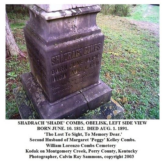 NOTE: I placed my first-cousin-five-times-removed, Shadrach “Shade” Combs II on my ~ Combs Collins Sumner Adams Holbrook Caudill Kelley Mullins; Brashear Young Campbell Cornett Woods Dorton Asher Bowling Sizemore ~ Maternal Family Tree, that I created on Ancestry.